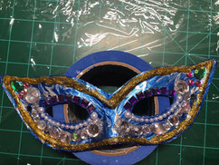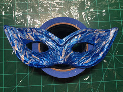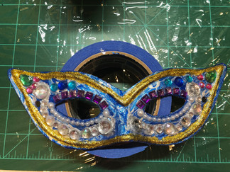 Hole is to small for the ribbon I'm going to use. 5) use a hole punch to make whole bigger. punch the whole and twist to get it to go throw mask material.
