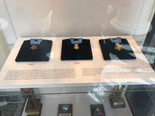 Gold gilded lamps top the hinge of each gate. On each gate, front and back, are two gold wreaths 30 inches in diameter. Each wreath cradles the shield of the U.S. Department of War aka the precusor to the U.S. Department of Defense, as well as the armed services that existed in 1932. On the Schley Gate, these are the United States Navy and United States Coast Guard. The United States Air Force did not exist until 1947. Each gate is divided into 13 sections by wrought iron fasces, and above six of the sections are iron spikes topped by gold stars.